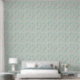 柔らかい青色の花と黄色の中心の調和のとれたブレンド淡い色の,甘いピンクの弓で結ばれ,さまざまなサイズで配置。繊細な花束は、穏やかで淡い緑がかった黄色の背景に美しく散り散りばめられ、落ち着いた感じと甘い感じ質感を放つ。