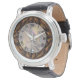 茶色スタイリッシュの色合いでローマ数字の腕時計。