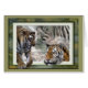 美しいデジタルアートプリントは、3D効果を持つ2頭の虎が写真フレームから飛び出すように見える。キリンとゼブラを重ねた背景。野生動物芸術の素晴らしさは、野生動物の愛好家のための素晴らしい贈り物アイディアを作る。