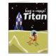 ティタンのヴィンテージ旅行ポスターMaxと彼の犬を背景に、可愛いレトロな緑のロケットを搭載したヴィンテージ旅行ポスターで、サターンムーンのタイタンに向けて旅をする。
