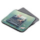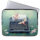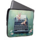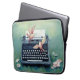 タイプライター及び鳥のティール(緑がかった色)のラップトップコンピュータの袖 ラップトップスリーブ
