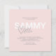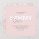 このモダンバルミツワーパーティの招待状は、あなたのミドルネームとはっきりしたトレンディー手書きスクリプトタイポグラフィのハートがピンクの背景の上に付いたフォントにあなたの名前を設定淡い色のする。招待状カードはXとoデザインの手書き文字でピンクの水色の無料の背景に反転する。女のシンプル子のパーティーに可愛い選択だスタイリッシュ。このバレンタインデーの招待スイートの詳細については、ZazzleのDoTellABelleを参照してください。