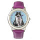 タキシード猫白黒猫かわいいペットピンクの少女 腕時計