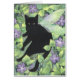 午後の昼寝のために解決している石炭黒い妖精猫はある美しい紫色のタマキビのつる植物の影で寄り添われます。 カルメンMedlin著芸術。