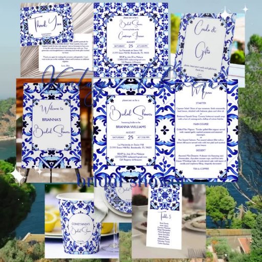 Talavera Azuejo blue tiles bridal showerデザイン: Ieva Jenciute