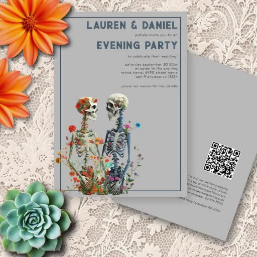 タロット恋人ミニマル文字QRコードゴシック結婚ズ。4.5 x 5.6インチの低価格の代替品として、タロットデザインを使用すると、詳細で簡単にパーソナライズできます。ゲストがRSVPにスキャンして他の詳細を表示できるように、QRコードを背面に追加する。文字と背景の色もしを変更するには、[追加編結婚集]オプションを使用して独自の色テーマに合わせる。