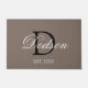 Tan Brown Scriptエレガント Family Monogram Doormatカスタマイズ可能な茶色の褐色の背景と黒のモノグラムのイニシャルを中心に設計。白パーソナライズされた書のレタリングと年の中でカップルの姓の下中央の白い数字で確立した。引っ越し祝いパーティーまたは素晴らしブライダルシャワーギフトアイディアを作成する。クリックテンプレートのパーソナライズ・オプションと入力モノグラム、姓および定年。