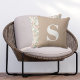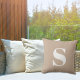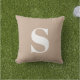 タンベージュイニシャルモノグラムの屋外枕。イニシャル付きの装飾的な屋外独身の枕。素早く簡単にパーソナライズ。