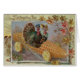 この可愛い七面鳥のカップルは感謝祭に向かっている。このヴィンテージ感謝祭プリントは、トウモロコシの車の中の2つの七面鳥を描く。紅葉縁ど。