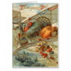この飛んでいる七面鳥は来贈り物がある。このヴィンテージ感謝祭プリントは、飛行機の中で七面鳥を描き、空中から果物や野菜を落下させる。