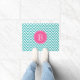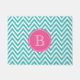 シックなトレンディーモダンターコイズとホットピンクの円の枠にカスタムモノグラムと白いシェブロンのdoormat。ITボタンで文字の移動やクリック画像の追カスタマイズ加など。