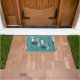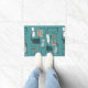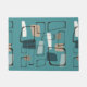 20世紀半ばインスパイアの抽象芸術アートのデザインモダン。ティール(緑がかった色)グリーンと金ゴールドに幾何学模様の変形した正方形を持ち、ターコイズの背景を持つ。