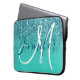 ターコイズグラデーションティール(緑がかった色)グリッターモノグラパーソナライズされたム ラップトップスリーブ