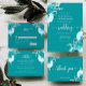 このエレガントな結婚式は、日付の磁気カードを保存し、ターコイズの背景にフェイク2つのコーナーに銀箔の緑でオフに設定されたターコイズフローラのブークセットを特徴とする。カスタマイズ可能な文字は、シルバーグレーセリフ、斜体、手書きフォントを組み合わせたもの。
