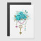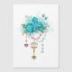 アンティーク金ゴールド鍵とトレンディーターコイズバラ飾と白金ゴールドとピンクと青のビーズののを持つ。おしゃれな色。ターコイズバラ。ホワイトゴールド.青いティファニー。