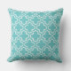 白いスタイリッシュモロッコのモダン装飾的なクアトレフォイルの模様を特徴とする枕。ターコイズカスタマイズ/アクア青の背景を屋外の装飾と調整する。