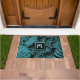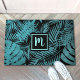 ターコイズモノグラム熱帯パームモダン模様 ドアマット