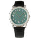 この男性用ウォッチは、ターコイズの分野でモダン、緑と海軍の半円がティール(緑がかった色)に囲まれた楕円の半デザインを持っている。