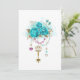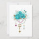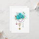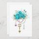 葉の白金とピンクと青いビーズで飾られたトレンディなターコイズローズが付いたアンティークゴールドの鍵。おしゃれな色。ターコイズローズ。白金。ブルーティファニー