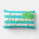 ターコイズ&ホワイトストライプパームツリーアロハ アウトドアクッション