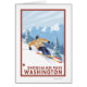 ダウンヒルスノースキーヤー – Snoqualmie Pass, WA - Vintage Travel Posterが2007年に制作された。この画像はワシントン州スノクアルミエパスのシーンを描いている。
