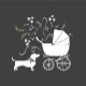 この愛らしいダシュンドウィーナー犬の赤ちゃんシャワーデザインとお祝いに兄弟姉妹の毛皮のベビーを含む!途中にベビーを持つ子犬の恋人に最適。ダシュントは愛らしいヴィンテージ車の隣にある。黒板の灰色の背景はシャワーやコ男女兼用ードシャワーに最適!