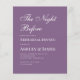 ミニマシンプルリストのダスティ紫のリハーサルのディナー招待。ほこりっぽい紫の背景に白い文字があるだけだ。題名「前夜」は書書物エレガント。文字離れが揃った。