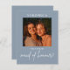 ほこりっぽい青い写真メイド・オブ・オーナー(花嫁付き添い人)ボホ提案カード。'メイド・オブ・オーナー(花嫁付き添い人)'という語は編集できない。横向き/横向き写真をアップロードする。コレクションに一致するアイテムがあるかどうかを確認する。