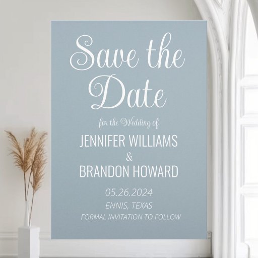 モダンエレガントフローラダスティ結婚ブルーの旗新しい結婚に最適。新郎新婦の名前と日付でパーソナライズできる。