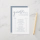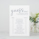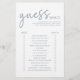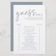 このシックでミニマリストな誰のゲームであなたのブライダルシャワーをスパイス!この単モダンなる青と白のデザインでクラシックゲームにエレガントひねりを持つ。This Guess モダン Whoゲームは、花嫁と彼女のゲストが混じり合って笑いを得るのに最適なアクティビティである。クリーンでミニマルなスタイルにより、あらゆるスタイリッシュブライダルシャワーお祝いにtouchを追加。会話カスタマイズと笑いを刺激するカップルに関するおもしろいの質問とゲームカード。