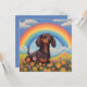 ダックスフンドのワインハウンドを偲ぶ、美しい絵葉書。絵には、ダックスフンドが天国のような美しい丘に立っており、頭上には美しい虹がかかっている。これは、愛するダックスフンドが虹の橋を渡って犬の天国に行ったことを象徴している。カードの裏面には、あなた自身のダックスフンドの名前や、思い出のメッセージを入れることができる。愛するダックスフンドが旅立った後、ダックスフンドを愛する人への特別な追悼の品、または哀悼の意を表すギフトとして。