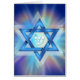ダビデの星で、中央にヘブライ語の手紙シンがあり、背後から光のカラフル線を持つ。