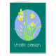 青い背景に青いレタリングと緑と白いを持つダフォジルの塊とオランダ言語で表かわいらし面カバーのグリーティングを持つ非常にイースターのカー縁どド、ジュディ・アダムソンの水色から絵画。内部感じメッセージを自由にカスタマイズする。