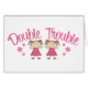 ピンクの花のシンボルとピンクの服を着た愛らしいステッキのフィギュアの女の子。読双生児の場合