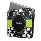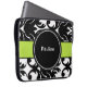名前かイニシャルおよびスタイルのあなたのラップトップ、netbook、またはタブレットを保護する白黒背景加えるモノグラムの宇宙が付いているダマスク織のラップトップスリーブ。 適合15インチのモバイル機器。