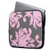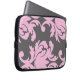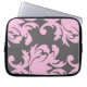 スタイルのあなたのラップトップ、netbook、またはタブレットを保護するピンクおよび灰色の花柄を用いるダマスク織のラップトップスリーブ。