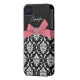 ダマスク織のiPhoneの場合が付いているピンクの弓 Case-Mate iPhoneケース