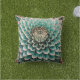 ダリアフラワーインティール(緑がかった色)アクアブルーデジタルアート アウトドアクッション