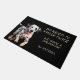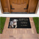 "2回ノックする必要はない、我々はダルマチアを持っている"このドアマットおもしろいを宣言。文字は右淡い色の側に日焼けしており、愛らしいダルマチア犬の写真が離れいる。すべて黒い背景に置かれる。