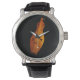 黒い背景に美しいダルシマーをセットした腕時計。金色の茶色とハート型のかわいらし音孔を持つ。アパラチア・ダルシマー(または山ダルシマー、フレッテダルシマー)はジター科のフレッテッドストリング楽器である。体はフィンガーボードの長さを延長し、そのフレッティングは一般的にダイアトニックである。