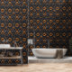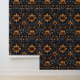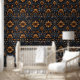 ダークアカデミアオレンジとグレー装飾フルーア 壁紙