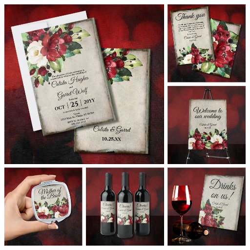 Elegant Red Floral Grunge Wedding Stationeryデザイン: Amazing Beautiful Creative Designs