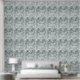 ダークグリーンとティール(緑がかった色)モンステラ離れのとライリーの輪郭 壁紙
