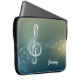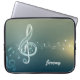 ダークグリーン音楽ノートとカスタムモノグラム ラップトップスリーブ