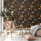 この暗いフローラミッドナイトガーデンのムーディボタニカルブラック壁紙は、バスルーム、ベッドルーム、またはアクセント壁に最適である。