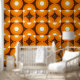 このデザインは素晴らし濃い茶色の背景に設定されコンテンポラリー、濃い黄色、薄いオレンジ、白の幾何学円と正方形のパターンを特徴としている。それは華美、バイブを醸し出しエレガントてスタイリッシュ、それはヴィンテージデジタル幾何学のモチーフの好き、お尻の流行ファンシースタイル愛好家、抽象芸術レトロな芸術の愛好家に完璧な芸術的ファッションを作り出す。