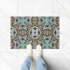 ダークブラウンティール(緑がかった色)ブルーグリーングレーオリエントトライバルアート ドアマット