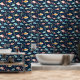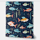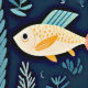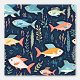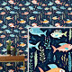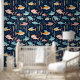 ダークブルーの壁紙に泳ぐ青とオレンジの魚