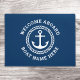 ダークブルーまたはカスタムいかりのドアマットは、ロープの中に航海の文字を備え縁どて「歓迎ボード」とカスタムあなたのボート名を備えた