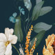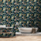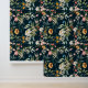 ダークブルーヴィンテージスタイルガーデンフラワーパターン 壁紙
